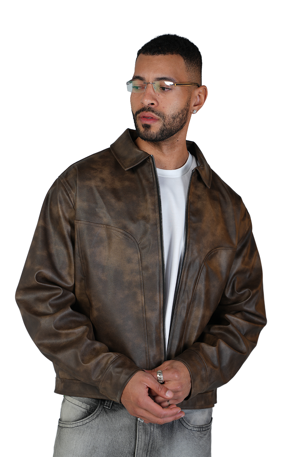 The fade leather jacket in brown